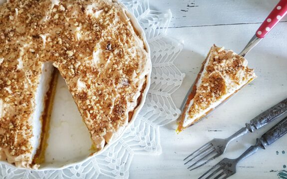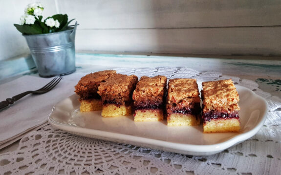 Kolač se sastoji od prhkog tijesta, sloja pekmeza ili voća i snijega od bjelanjaka, a recept je, naravno, iz već poznate stare bilježnice koju …