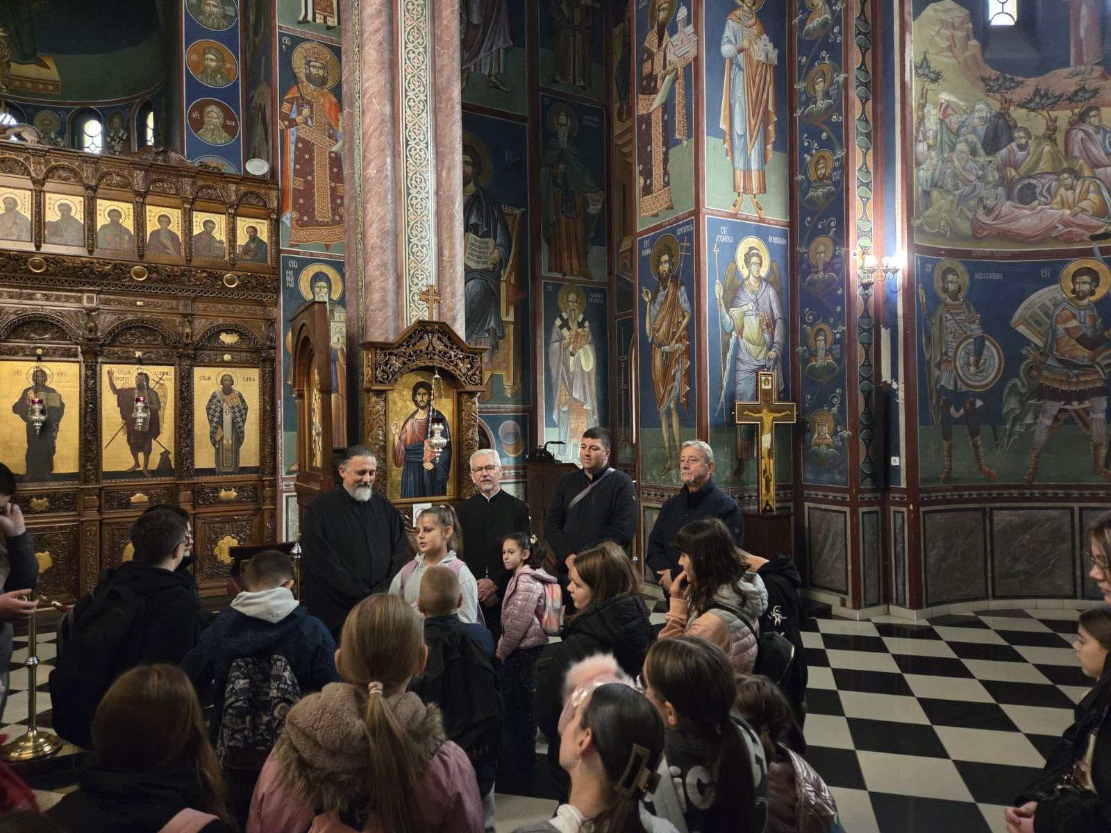 У православном храму светих Ћирила и Методија ученике је срдачно дочекао старјешина, протопрезвитер Борислав Ливопољац, који их је упознао с историјом и значајем храма те приближио духовни живот православне заједнице у Словенији.